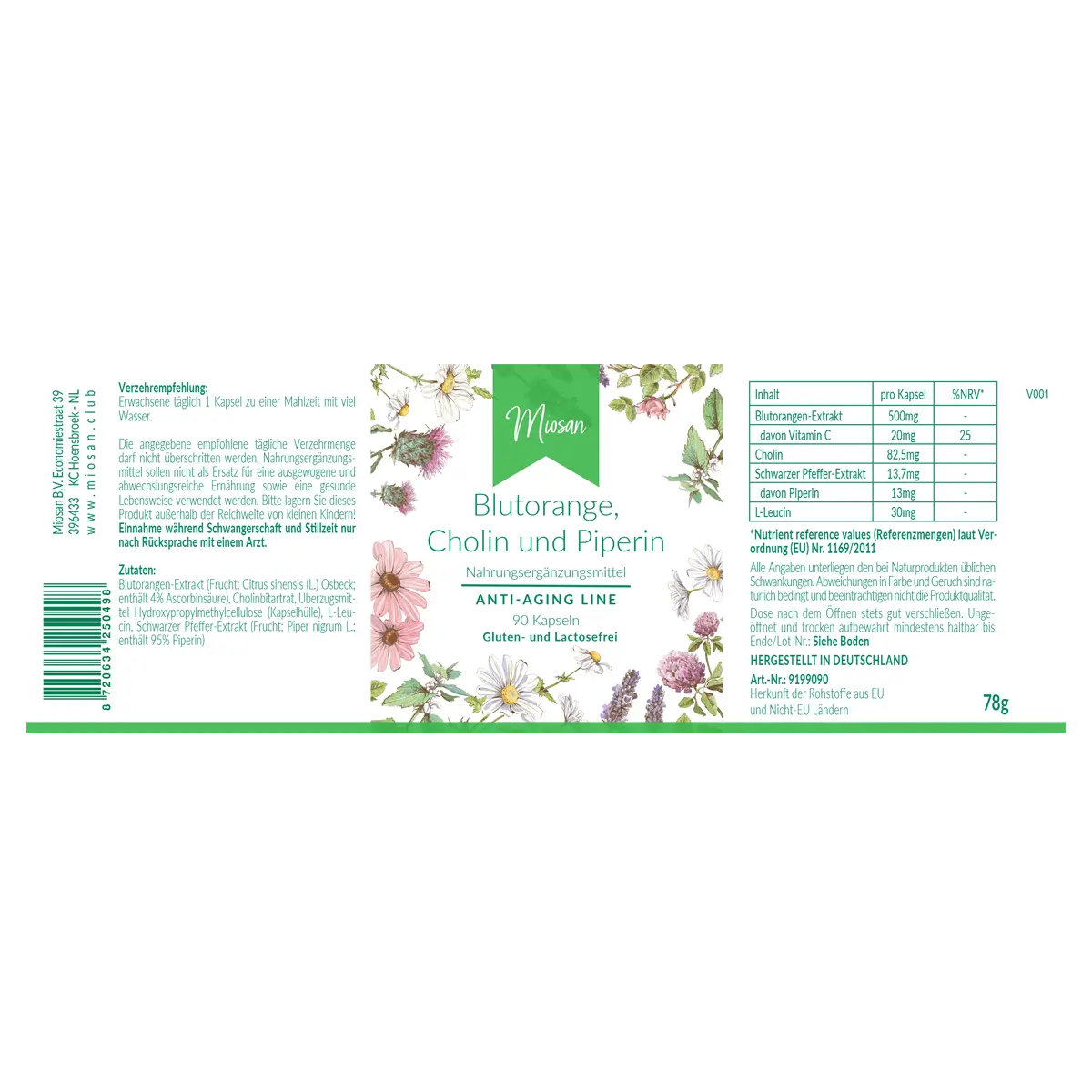 Produktinformationen "Blutorange; Cholin & Piperin; 90 Kap. | Miosan"