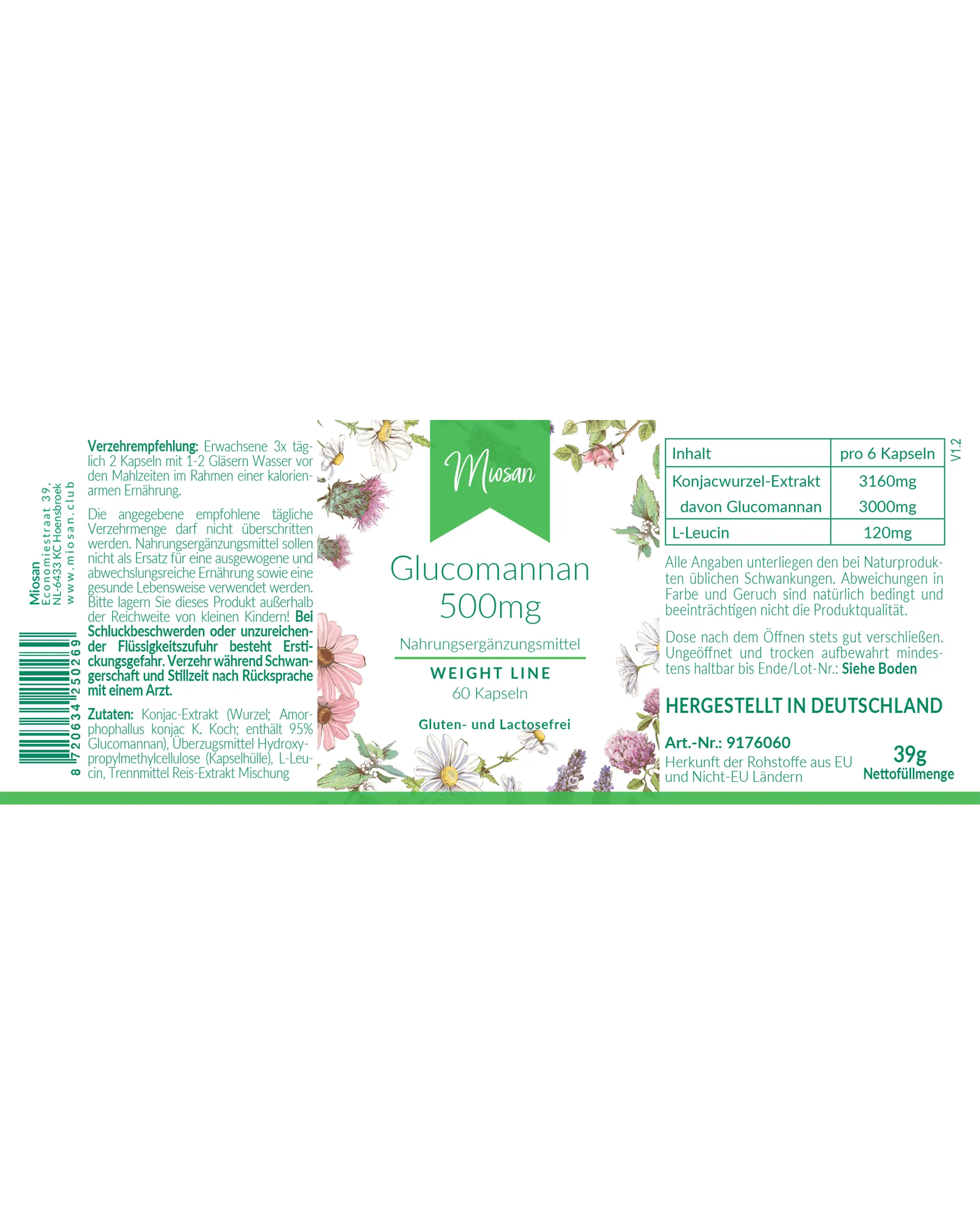 Produktinformationen "Glucomannan 500mg- 60 Kapseln | Miosan"