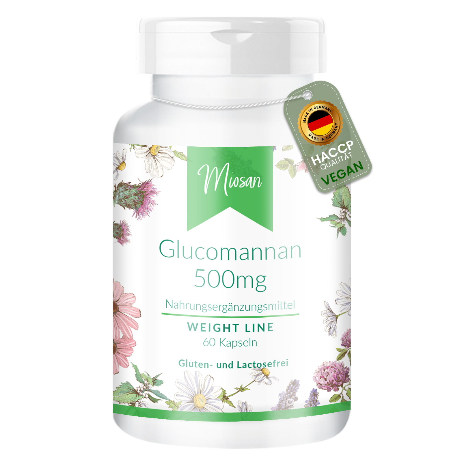 Produktinformationen "Glucomannan 500mg - 60 Kapseln - Schluckfreundlich | Miosan"