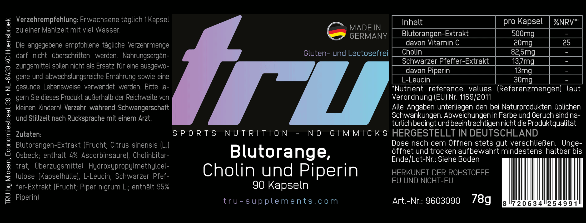 Tru Blutorange; Cholin und Piperine 500mg | TRU