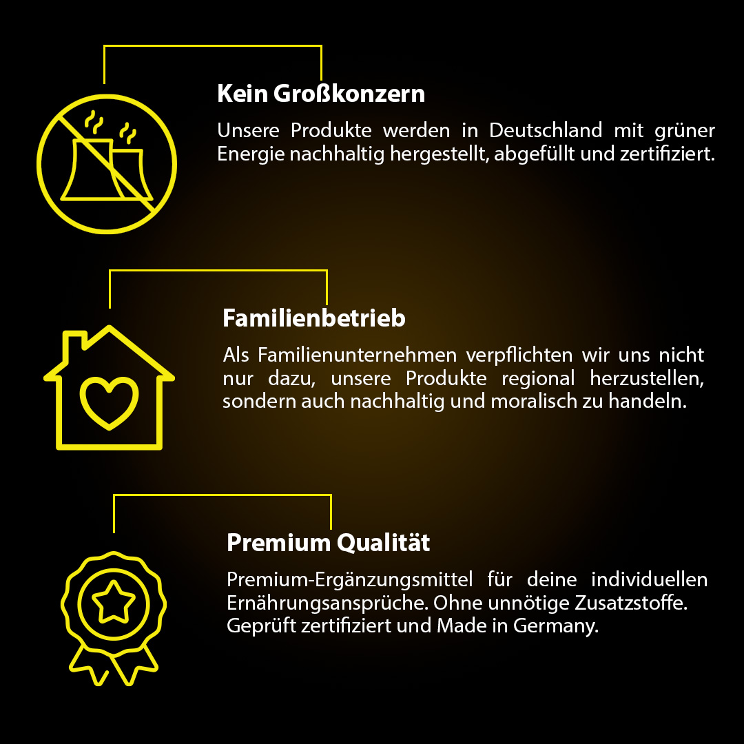 Hinweis: Aufgrund rechtlicher Bestimmungen dürfen wir als Hersteller von Nahrungsergänzungsmitteln keine Aussagen zur Wirkung von Vitalstoffen machen. Für weiterführende Informationen empfehlen wir dir, dich auf spezialisierten Websites oder in naturkundlicher Fachliteratur zu informieren, bevor du eine Bestellung bei uns aufgibst.